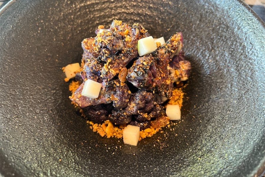 Also from the vegetarian section, was purple cauliflower with blue cheese, pepper berry shichimi and cubes of fresh pear ($18). This is a superb combination of flavours.