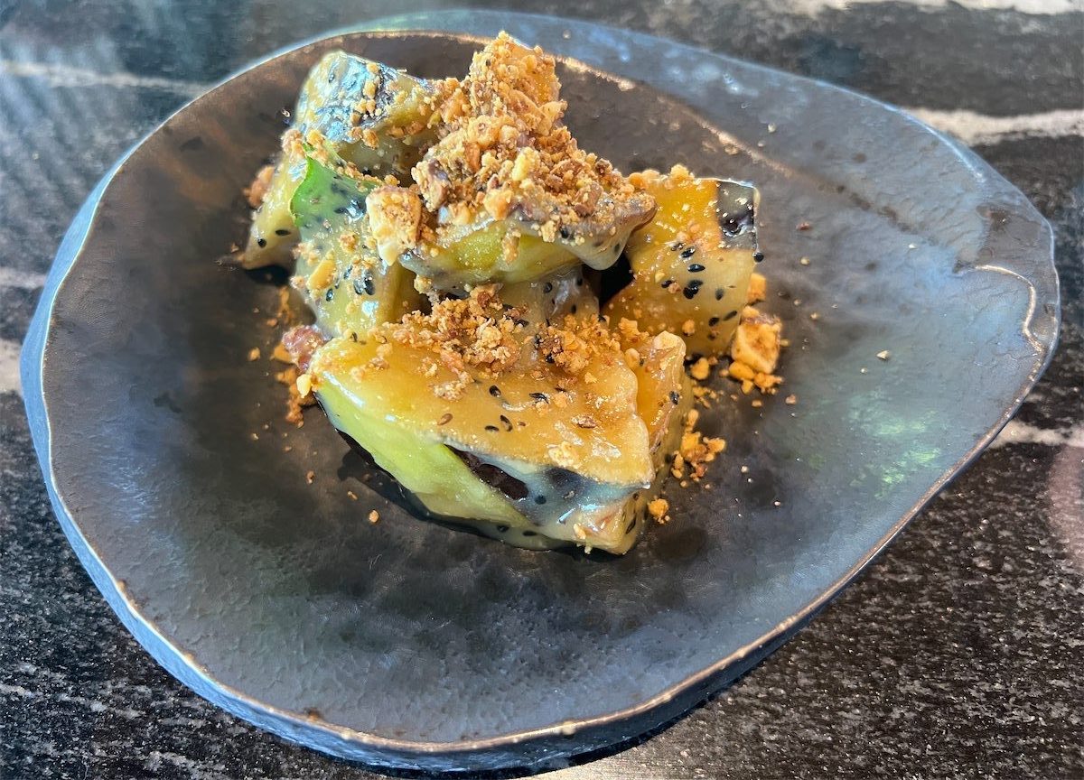 Absolutely gorgeous was the Saikyo miso eggplant ($18), slightly crispy on the outside, creamy on the inside and augmented with sweet basil leaves, macadamia and pistachio for crunch, and black sesame.