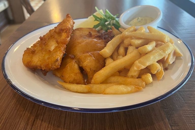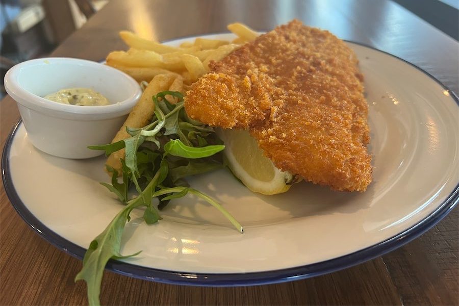 Barramundi was the fish of the day – crumbed or battered, with chips, fresh rocket and tartare sauce ($19). The signature crumb was golden and crunchy, the fish piping hot and the service of chips generous.
