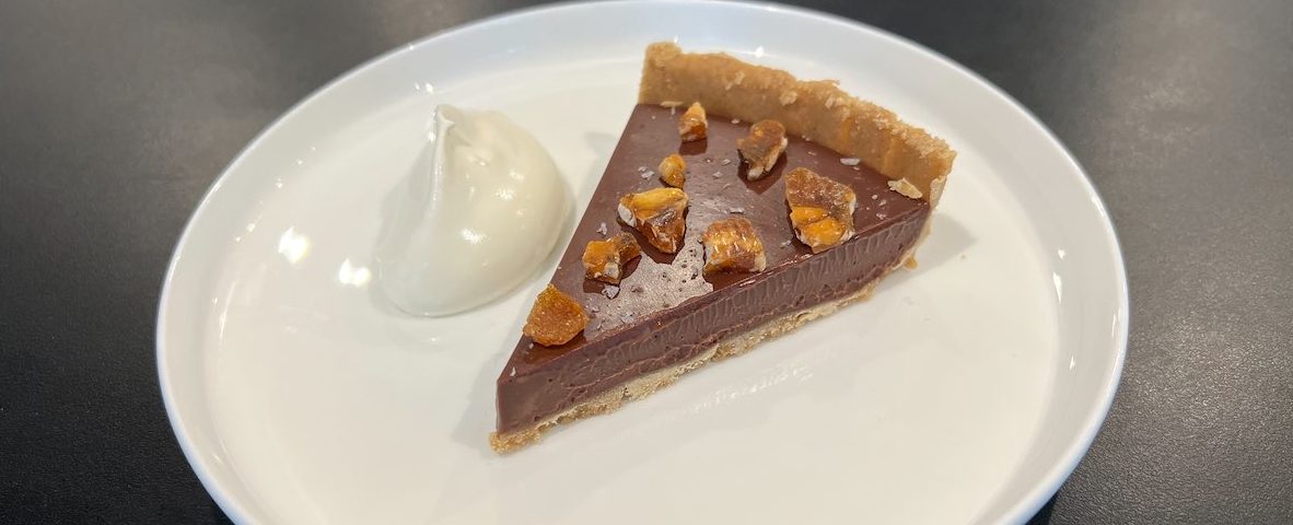 All desserts are made in the kitchen, and we couldn’t resist the Jasper + Myrtle (family-owned chocolate maker in Fyshwick) tart ($18). This vegan dessert is far from super sweet, which made it a perfect ending. The cashew praline added a fun texture, the cream was gorgeous, and we loved the bits of salt on top.