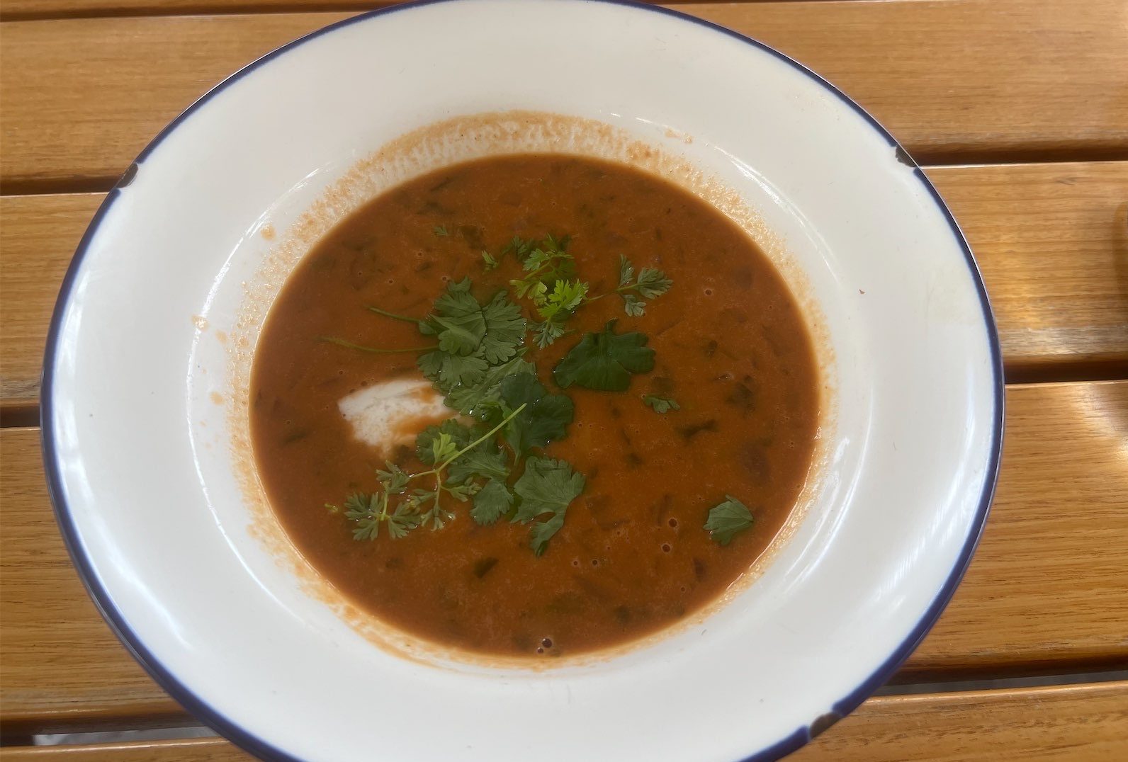 The red lentil soup was the star of the entrées, lightly curried with tomato, fresh coriander and a decadent dollop of coconut cream ($15). The parfait of chicken livers, enriched with cream and brandy, was equally decadent and a super generous serve ($18).
