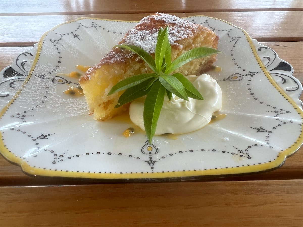 The cosy dining area is smallish but beautiful – cool in summer and with a wood fire to warm in winter (bookings recommended). Super-sized, double-glazed windows let diners soak in the panoramic views. The décor is comforting with bookcases loaded with fascinating books on wine and cooking, soft leather couches and puffy, colourful pillows. A new, large outdoor deck was about to open on our visit.