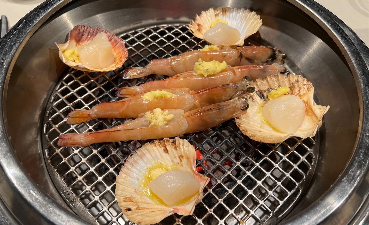 This platter is definitely for meat lovers, and we enjoyed cooking over glowing coals, dipping slices into one of three salts provided and then taking in the tastes. The second platter – Stairway to Heaven – combines Wagyu cuts, fresh seafood and pork belly ($239).
