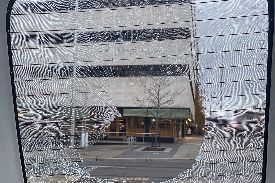 The incident occurred at a 6.30am on June 4, when a window of a fully marked, caged police vehicle parked on London Circuit was smashed.
