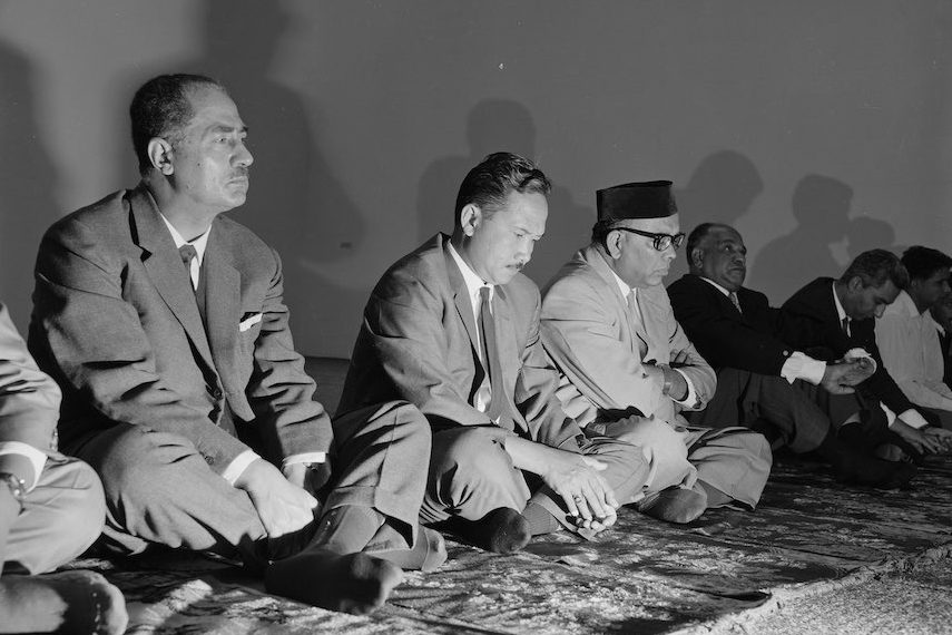An unusual, intimate image by Bill Pedersen shows prayer time at “a” Yarralumla mosque in 1966.
