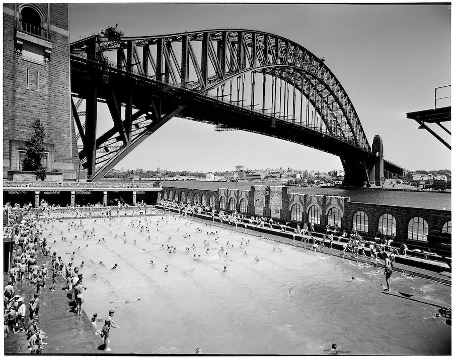 There are also impressive artistic shots, such as Jim Fitzpatrick’s “Seeking relief from the heat at the North Sydney Olympic Pool”, 1956. But is his subject really the bathers in the foreground or rather the magnificent Sydney Harbour Bridge at the rear?