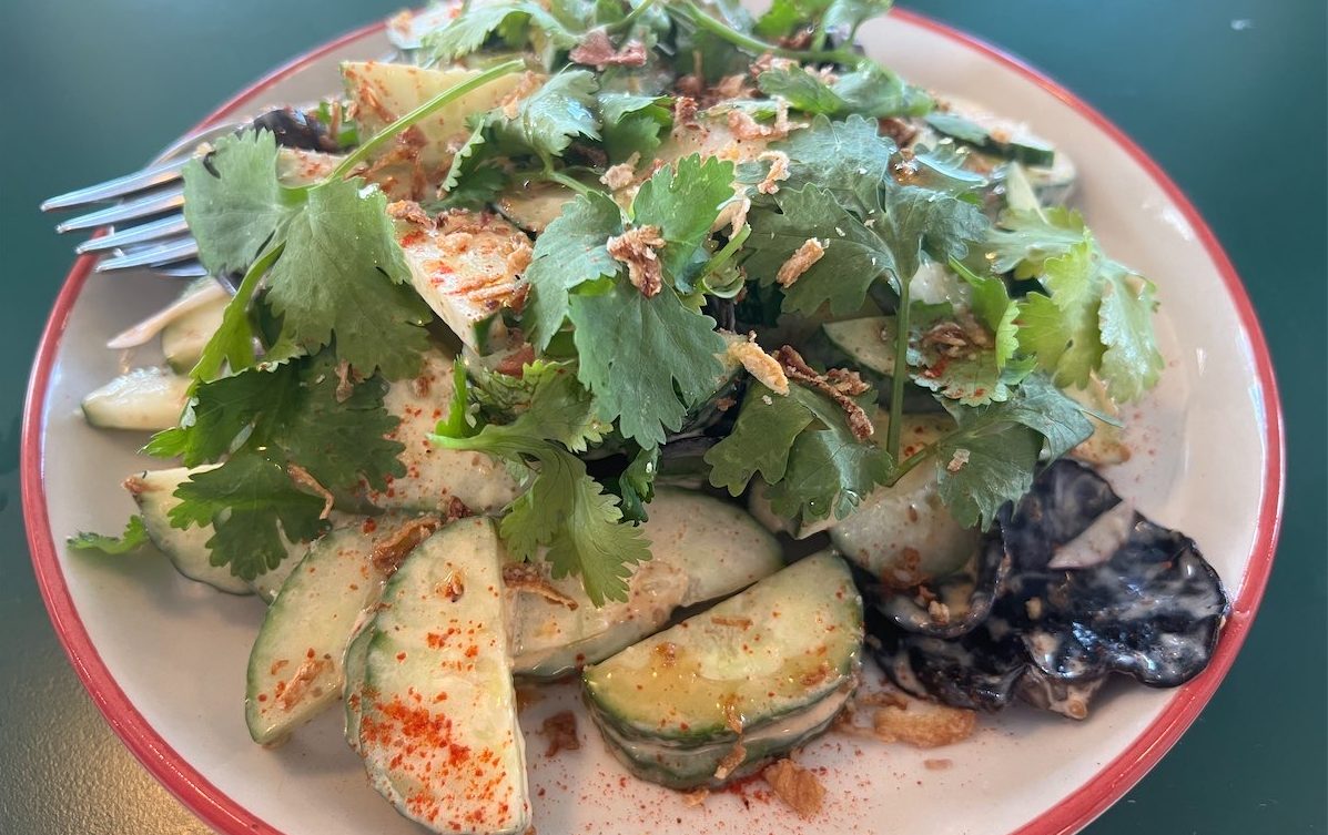 The Chinese smashed cucumber salad was a winning dish. Versions of this salad vary all over China and it’s so cooling in warmer weather. Queen Chow’s take includes garlic sesame dressing, pickled black fungi, crunchy, crispy shallots, and big chunks of cucumber ($18). I promised to replicate it one day (wish me luck).