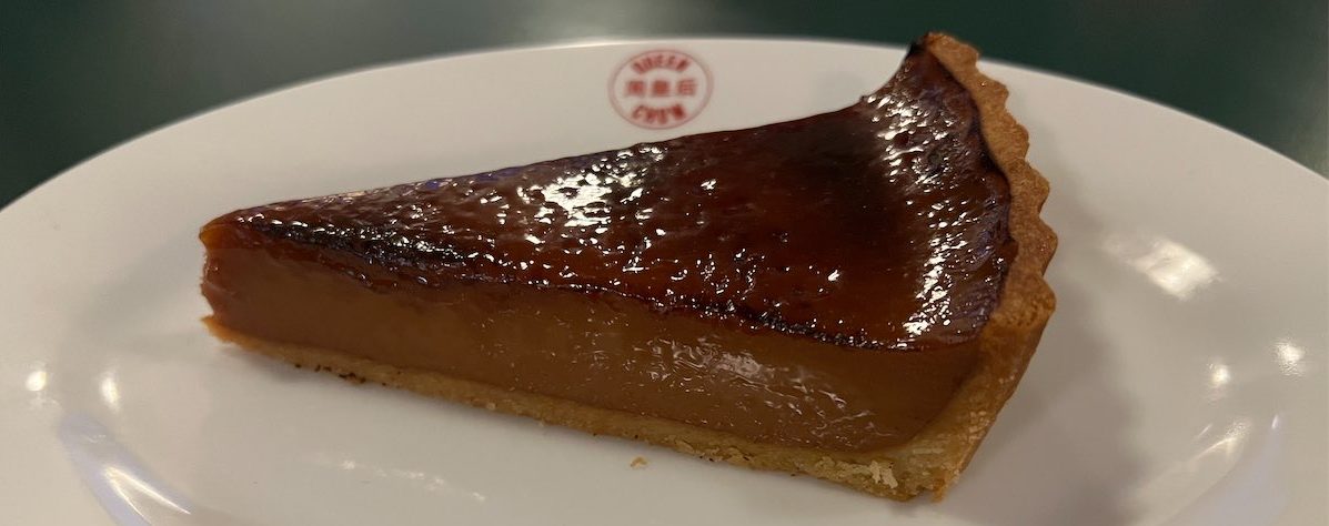 Our highly knowledgeable and charismatic waitress convinced us to share the three desserts Queen Chow has on offer (all a reasonable $16, considering the quality and creativity). The salted caramel tart was silky and not overly sweet. The “Queen of puddings” is a decadent combination of flavours and textures – mango, passionfruit, coconut, and black sesame meringue. Colourful and intriguing was the bright green pandan sponge cake with chocolate wafer and a creamy coconut sorbet.