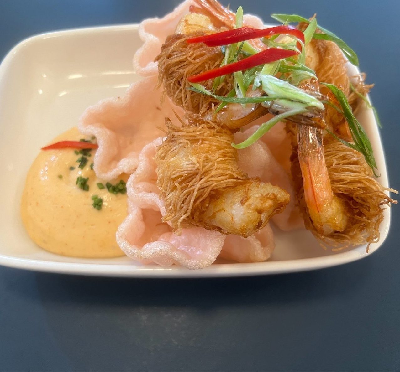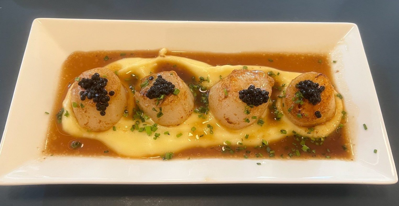 The quality of the steak tartare is right up there, with the cubes of tender meat enhanced with salty capers, chives, and crunchy prawn crackers (only $17). The scallops were sensational with potato cream and chicken jus (four for $22). For starters, we also shared the prawn cutlets, wondering about the pineapple and sweet and sour approach but the flavours worked (four for $18).