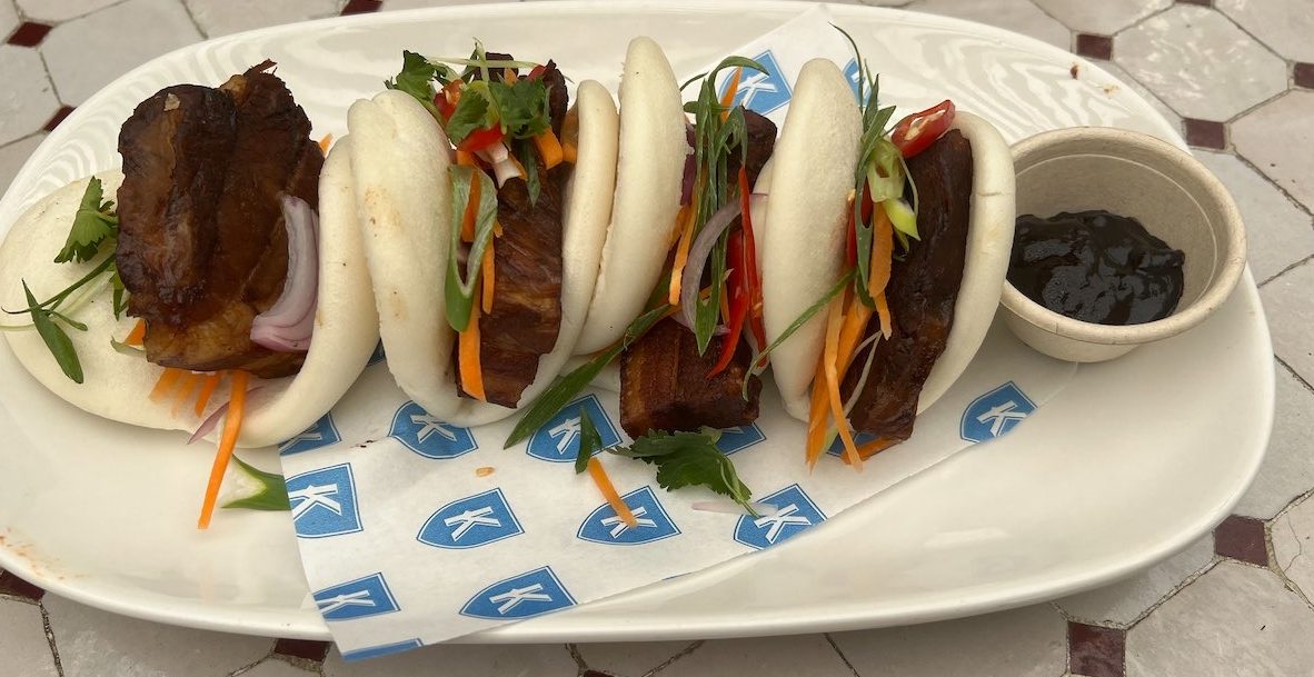 We shared darling dumplings with pork, eagerly dipping them in a dish of salty soy (super value at $12 for about 12). Still on the pork theme, one of our all-time picks is the soft bao buns. The pork belly is slow cooked with five spices and “fun sticky” as a result. Cutting through with freshness is coriander, eschalots and spring onions. The chilli hit is perfection (four pieces, $22.90).