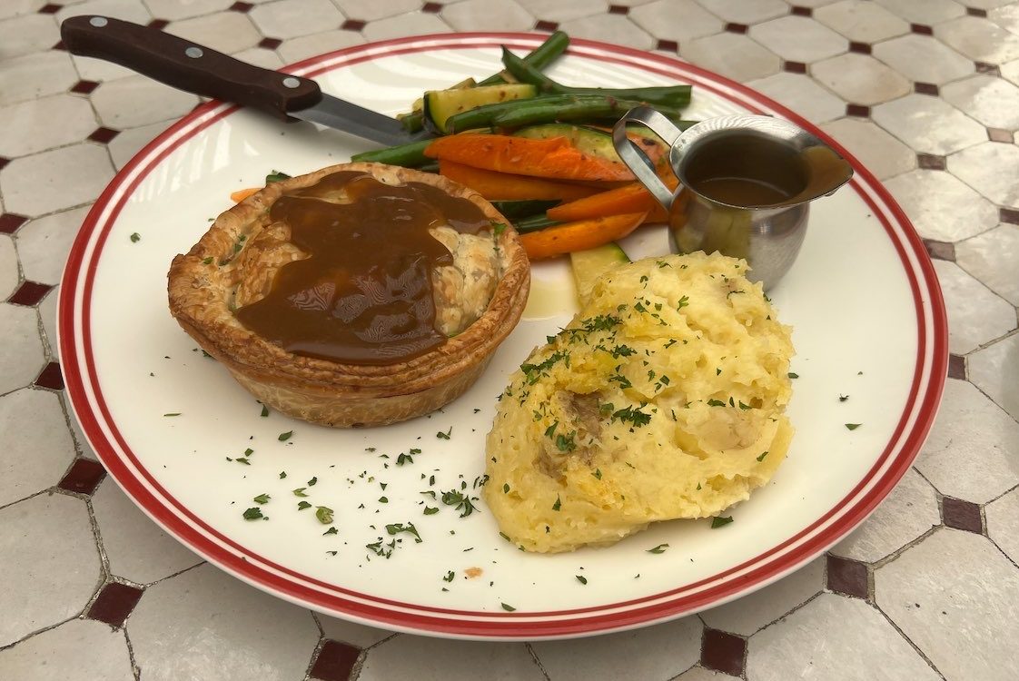 What would a visit to the Kingo be without a meat pie from the pub favourites part of Maddies’ menu? Flaky pastry, a mountain of golden-coloured mash (no holding back on the butter), mixed seasonal veggies tossed in garlic and a thick gravy ($24).