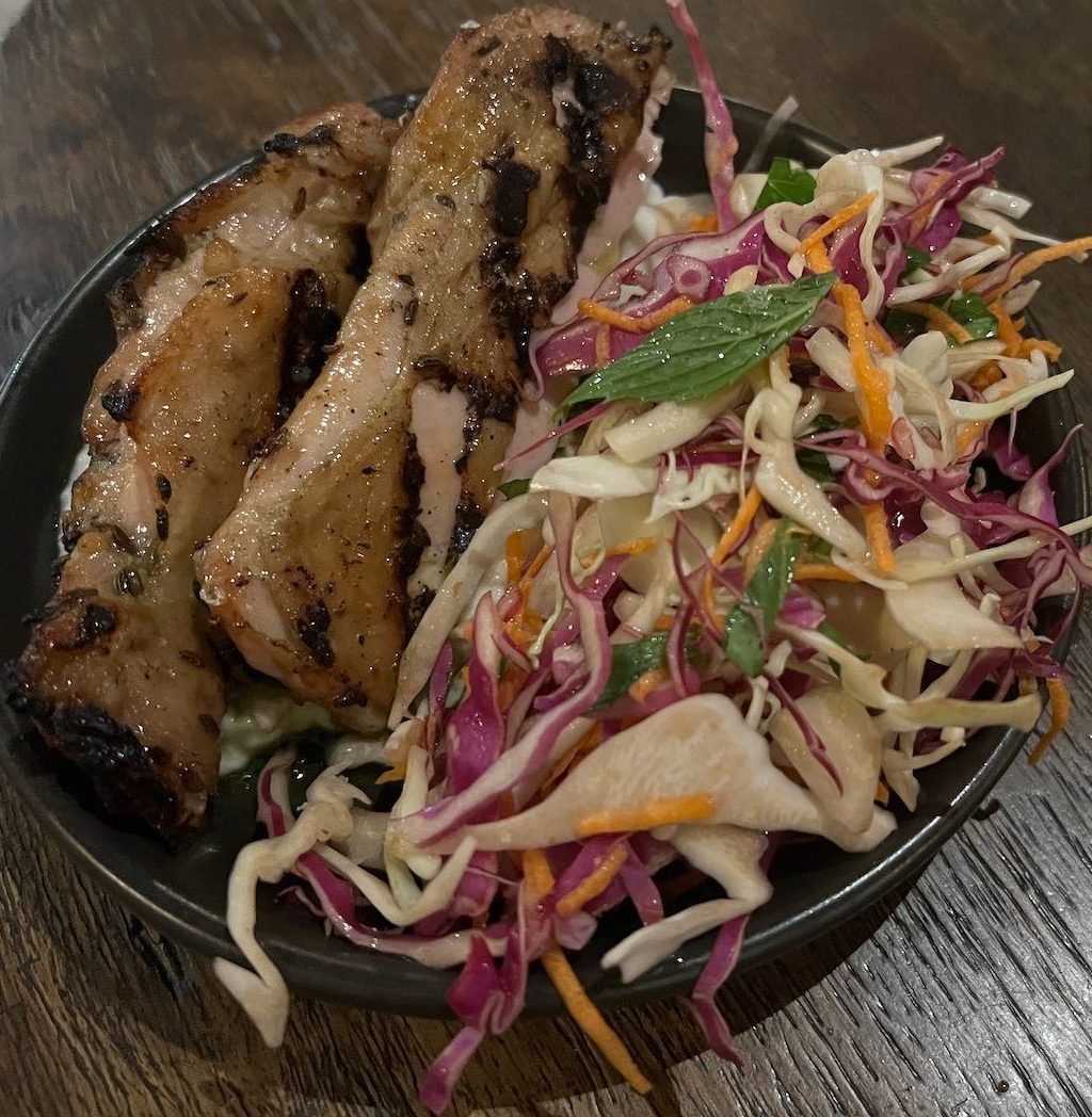 The colourful slaw that accompanied the charred chicken was super crunchy and the meat moist and delicious ($18)