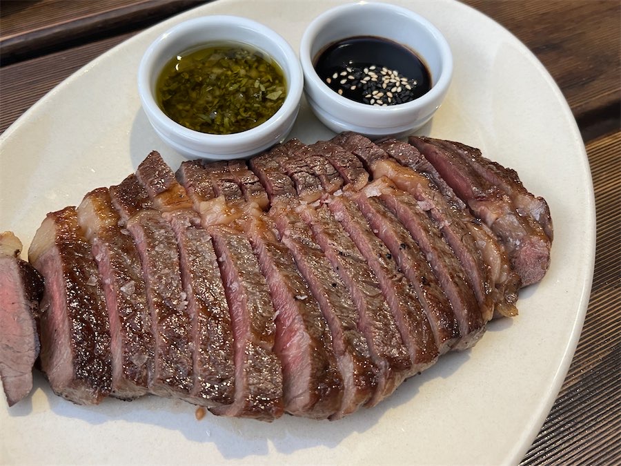 Our group loves sharing and that’s exactly what we did with the Angus scotch steak with two sauces accompanying in small white dishes – a burnt garlic and a zesty chimichurri (300 grams for $56). The wait staff recommended we mix the two sauces and we did with great delight. The meat was lovingly cooked and super tender. Not a bit was left on the plate.