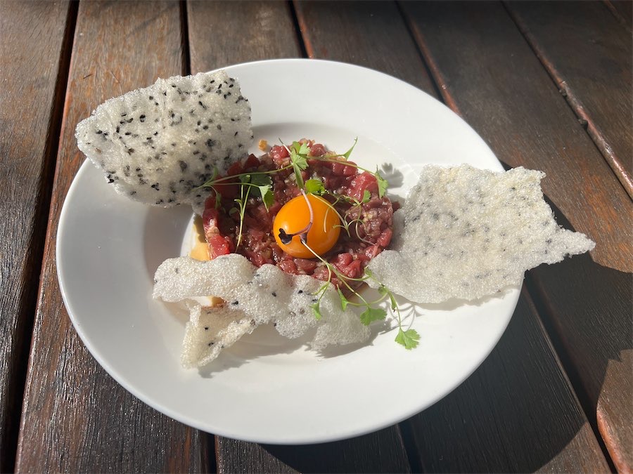 We love a beef tartare and applaud the kitchen for taking the time to finely chop the beef (no mince here). The cured egg yolk perched on top looked beautiful and the black sesame cracker was crunchy ($24). While it’s personal taste, we would have loved a bit of chilli to ramp matters up.