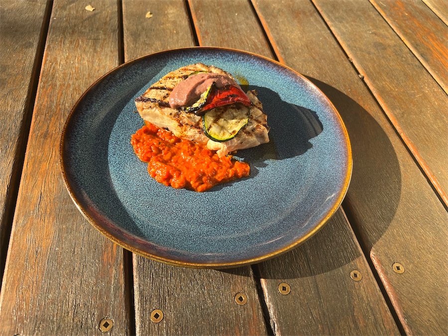 The marlin steak was thick and arrived with a smashing-looking, vibrant red olive and anchovy puree with roasted capsicum ($36). The outer of the steak was slightly dry in parts.