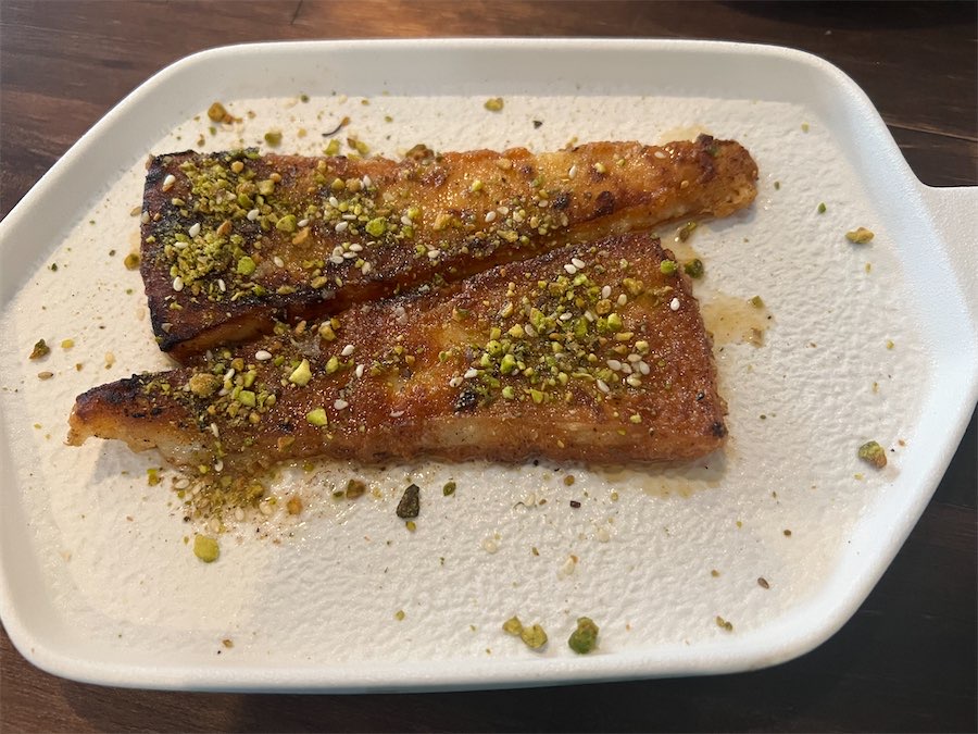 Another winner of a dish was the slices of crispy fried zucchini and eggplant with special spices and the oh-so-popular kefalograviera cheese, salty, nutty and piquant ($16).