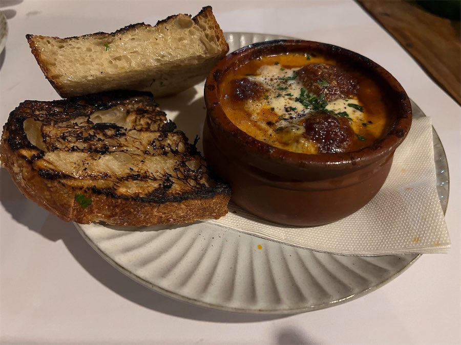 While we’d heard good things about Onesta, we had some issues (sad face). It took so long for us to be served that the beef cheeks we had our hearts on were all gone. The figs and prosciutto married well with truffle honey and an intense basilico ($27.50). The braised meatballs were so salty we couldn’t finish them (we mentioned this but were still charged $26.50).