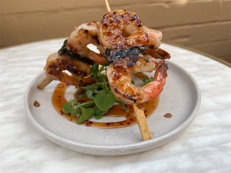Share plates are the go at The Parting Glass and the garlic prawn and Betel Leaf skewers were succulent and made our taste buds sing. The chilli glaze was sweet, but the lemon cut through ($20).