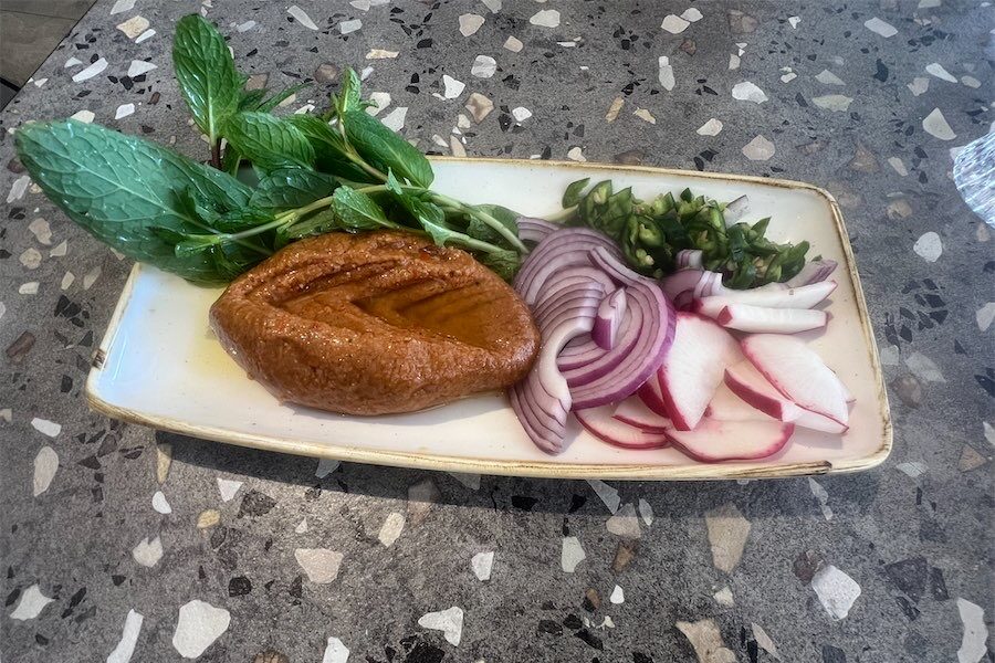 The lamb fillet tartare ($26) was exceptional. We took the advice of our server and stuffed tartare into pieces of soft Lebanese bread, next adding thin slices of crimson red onion, green chilli and fresh mint. We rolled everything together and loved how every bite was a mega burst of flavour.