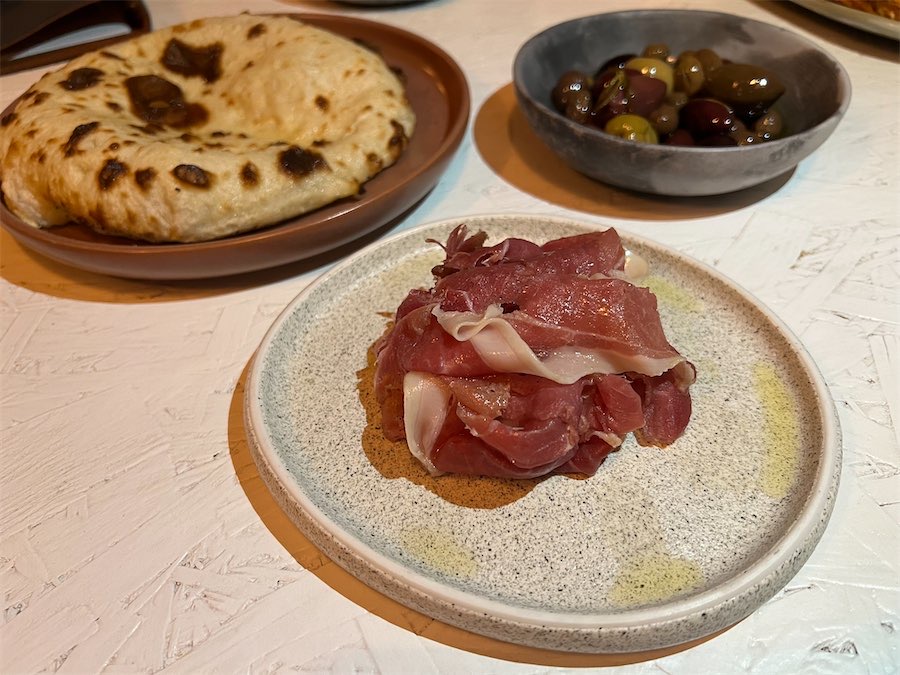 From the “snacks and smalls” section of the menu, we began with piping hot, soft wood-fired bread ($8), warm marinated olives ($10) and 24-month prosciutto di San Daniele ($24). What a start.