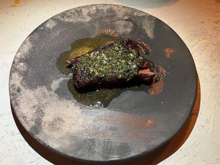 Moving to large dishes, we delighted in the wood-grilled wagyu flank (220 grams) with brown butter glaze and chimichurri. It was melt-in-the-mouth, and the chimichurri was wow-factor. This dish goes to show how affordable cuts can be transformed into superstars.