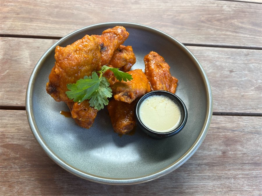 Lunch got off to a good start with chicken wings with spicy sriracha (a true flavour bomb). They were piping hot, and we dipped the generous-sized and super moist wings into a creamy, punchy blue cheese sauce (gluten-free dish, $18). Wings can be a tad messy to eat at times, but I believe that’s part of the fun.