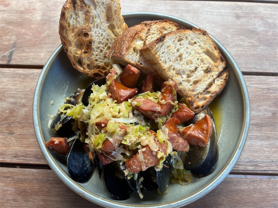 We also worship mussels, but these swam in a very oily sauce, a bit unattractive visually and it did impact on the taste. It was challenging to share them since no serving spoon was provided. Several were left lonely on the plate although we did gobble up the chunks of chorizo.