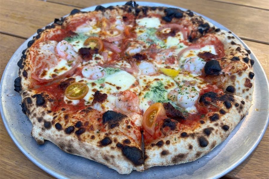 King prawns featured on our next pizza and Rosa’s didn’t skimp on ingredients. We were attracted to the addition of Nduja, a spicy, spreadable pork sausage from Italy’s Calabria region. Ndjua packs a punch but doesn’t overwhelm if used in the right proportion. Rosa’s makes this pizza with a garlic cream, intense tomato sauce, fresh parsley and bold, complex parmesan. It was fantastic.