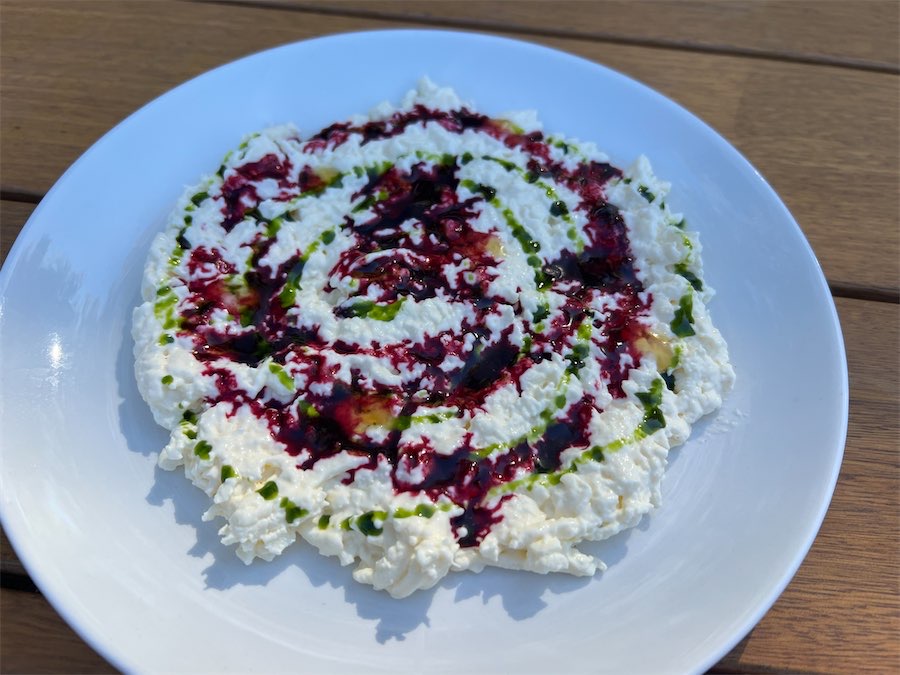 A gorgeous-looking dish, and another great starter, was the Stracciatella cheese with swirls of vibrant, ruby red beet oil, dribbles of bright green basil oil, and dollops of sweet leatherwood honey ($24). We initially wondered about the honey, but it worked a treat.