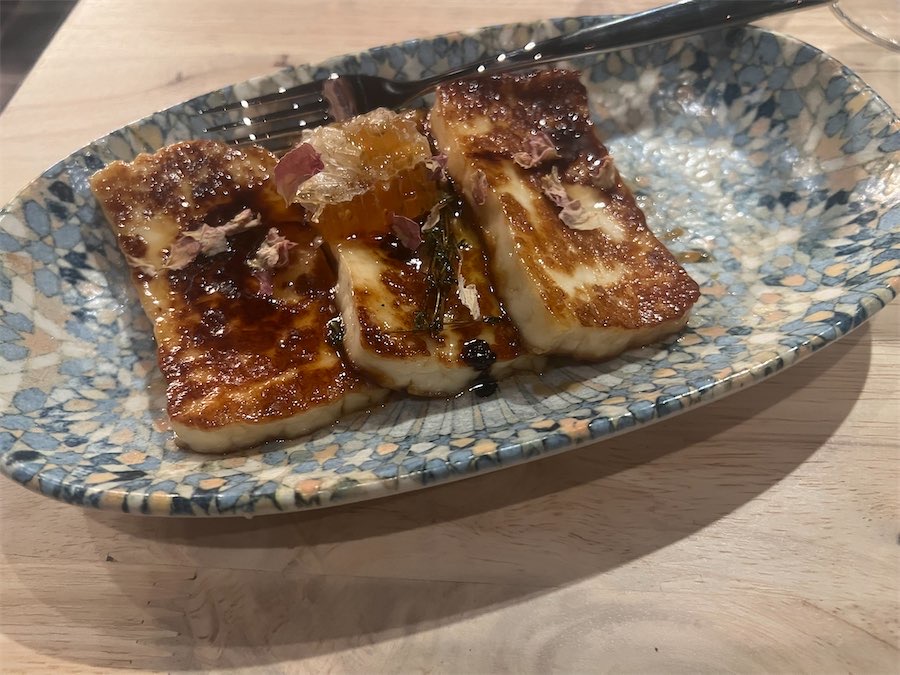 Haloumi lovers will be delighted. The cheese (nice and squeaky) is thickly sliced, fried and served with honeycomb, thyme and rose leaves ($19). The honey is the perfect level of sweetness. Another starter we adored was the sun-dried eggplant, which showcases the skills of the experts in the kitchen. The eggplant featured pomegranate molasses and a delish sour cherry rice ($16).