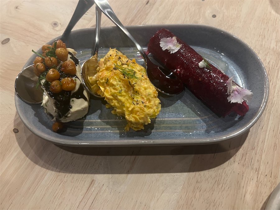 The dips are divine and far from what you expect (trio for $28 with freshly baked, piping hot Turkish bread). The silky, smooth hummus, for example, features a swirl of black tahini and crunchy chickpeas on top. The “Pink Sultan” beetroot is roasted for hours and served as a cannoli with mint and yoghurt. They are mouthwatering.
