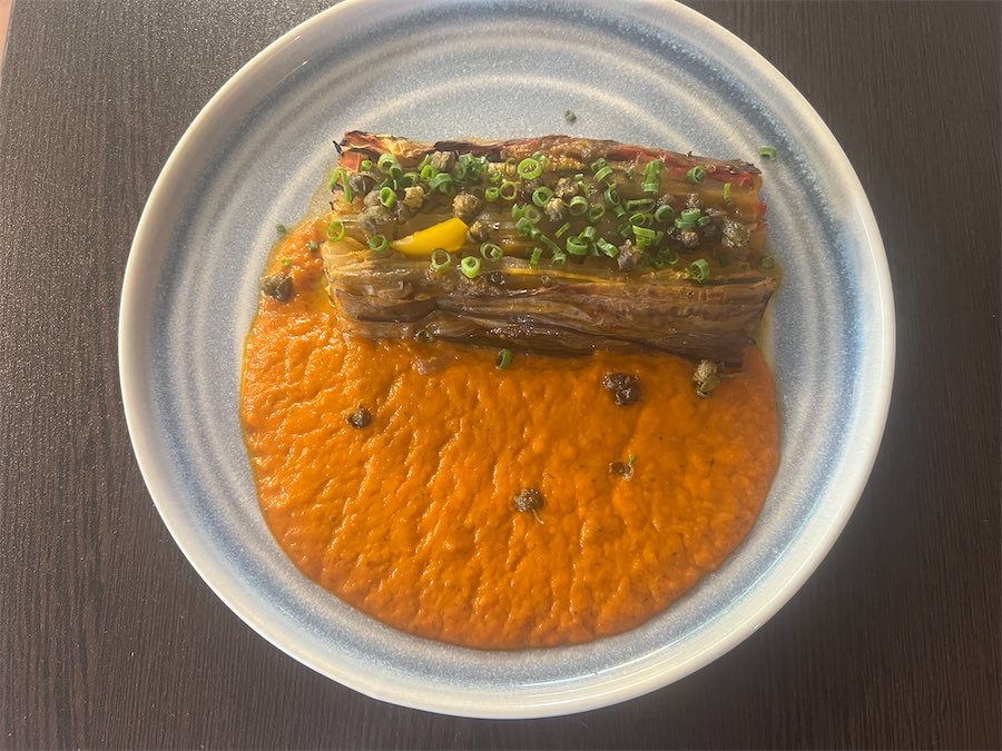 The good vibes continued with the layered eggplant and zucchini caponata ($18), served with a Napolitana sauce, zippy fried capers, and tiny slices of green onion. Although flavoursome, we agreed the sauce could have been punchier.