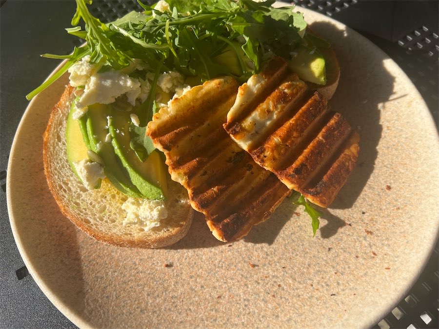 Lovingly presented was the avo on toast with chunks of salty feta and two slices of halloumi ($15.90). While the avo was soft and creamy, the over-toasted halloumi looked and tasted dry.