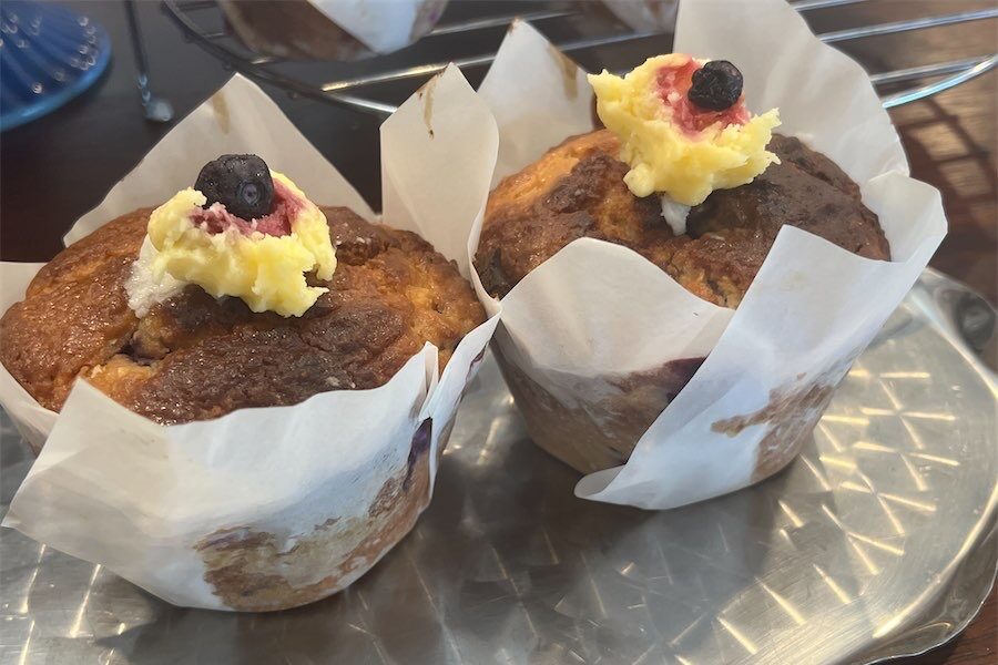 Indoors is as massive as outdoors. Order at the counter, after admiring the goodies in the glass display case, with inviting house-made muffins, banana bread and cakes. Or choose from the “official” menu, which has expanded and likely will again.
