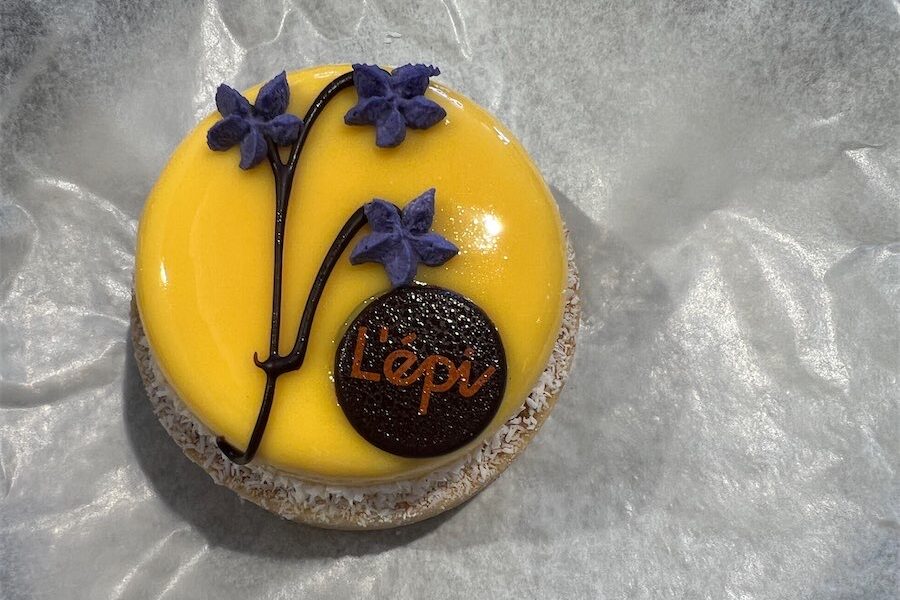 This artisan creation features gin-soaked pineapple, topped with passionfruit curd, encased in a passionfruit mousse, on a gin-soaked sponge and crunch tart base. Petals of purple flowers decorate the bright yellow tart making it super pretty. The tangy, tropical tart is not to be missed ($8.80) and is worth a trip to one of L’épi’s locations.
