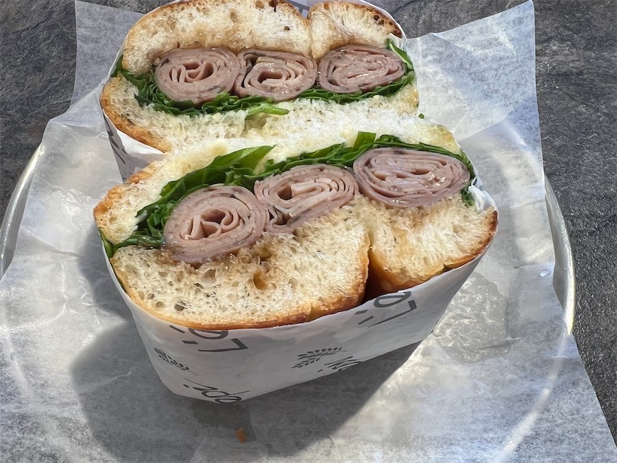 For lunch, on a visit to the newest bakery location in Yarralumla, I ordered a freshly made wagyu sandwich made with light, fluffy bread. Three slices of beef were meticulously rolled and placed on top of an onion-style jam, which added a lovely touch of sweetness ($14). Every bite was delicious.