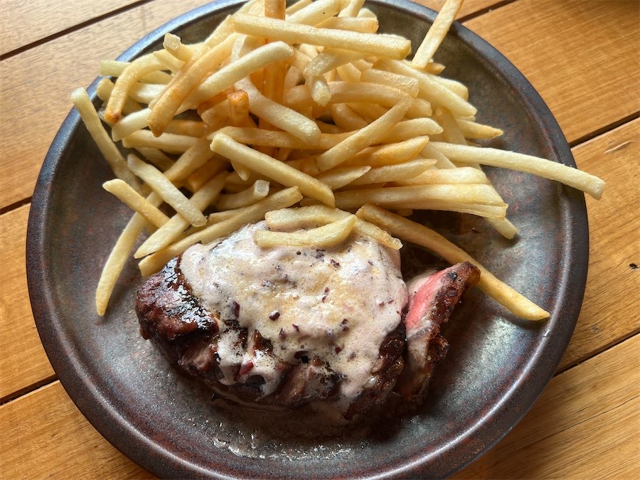 As ordered, our Riverina Angus Sirloin ($32) was rare, and came nicely sliced for ease of serving. It was smothered with a red wine butter and accompanied by a mound of fries. Had we known the serve of fries would be so generous we wouldn’t have ordered an additional side, feeling we may need more because we were sharing. This award-winning black Angus beef was tasty and tender.