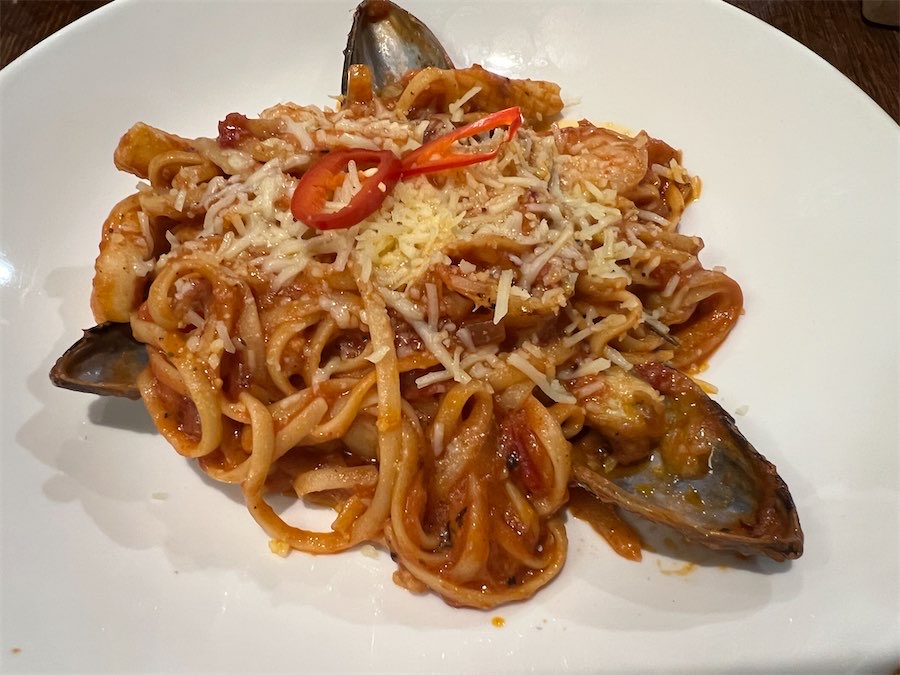 My seafood linguine featured a generous amount of grated cheese, which I wasn’t expecting since it wasn’t mentioned on the menu ($30). I would have asked for it to be left off had I known. The dish was missing the promised warrigal greens, but I enjoyed the mussels, prawns, calamari and chilli.