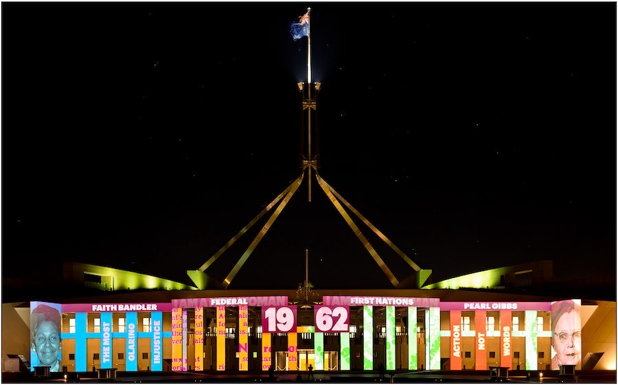 Parliament House will honour 12 women who fought for a more inclusive democracy through Alison Alder’s I am a New Woman projection, celebrating Australia’s role in granting women the right to vote.