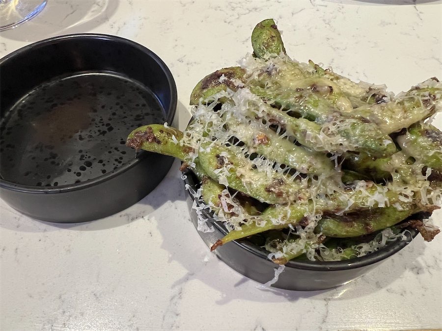 Here’s an example: warm edamame with anchovies, lemon, chilli and parmesan ($7). They’re addicting.