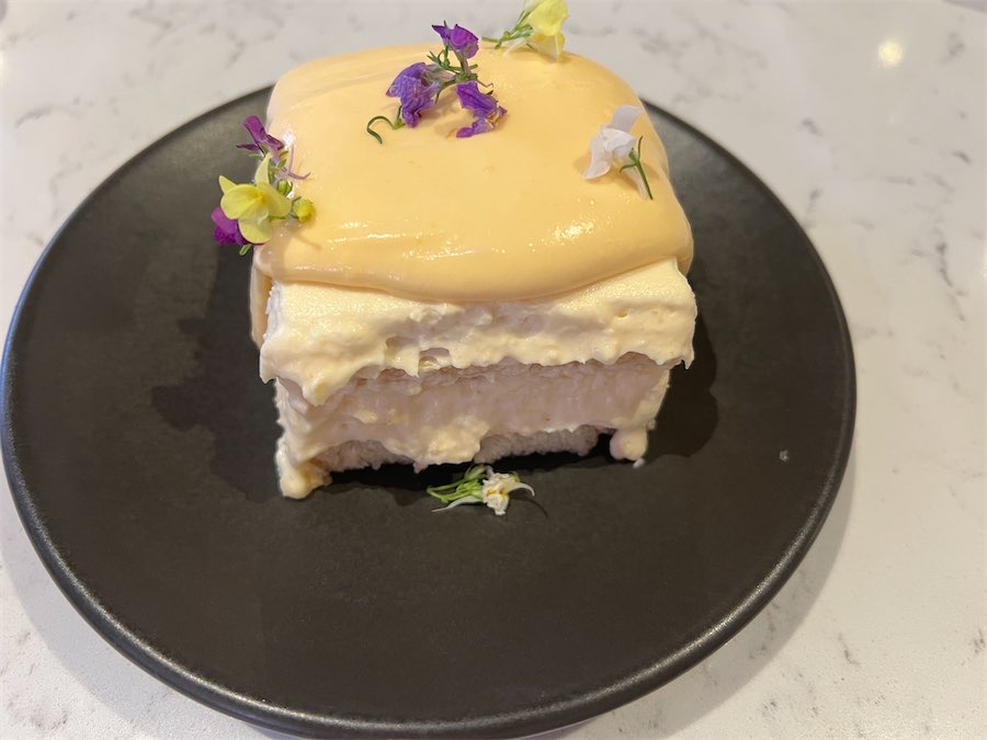 The dessert was delizioso and another shining example of wafu. The cool, creamy tiramisu was created with Japanese yuzu, providing a distinct, fragrant flavour ($15). Pretty, colourful micro edible flowers were perfectly placed on top.