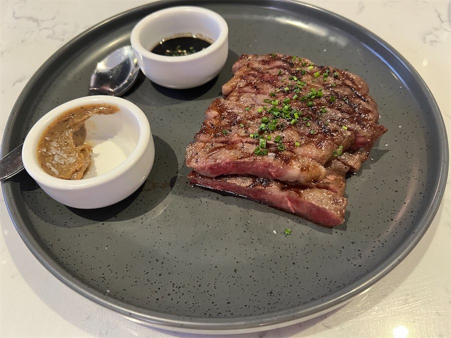 Equally sensational was the Wagyu sirloin with burnt garlic, porcini butter and sesame seeds, already sliced for easy serving (MBS6+ and $62 for 200 grams). Wow, wow, wow.