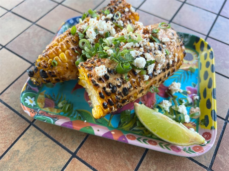 We also shared a cob of corn (already cut in half). It was charred with garlic butter and honey and came with a bold chipotle aioli ($12). On top was coriander, salty feta and tajin, a Mexican spice featuring chilli, lime and salt.