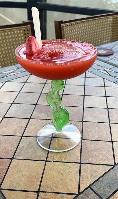 When I hesitated, he didn’t skip a beat and offered me a taste. I was won over. My friend ordered a frozen strawberry marg, served in a fun glass with a stem shaped like a cactus plant.