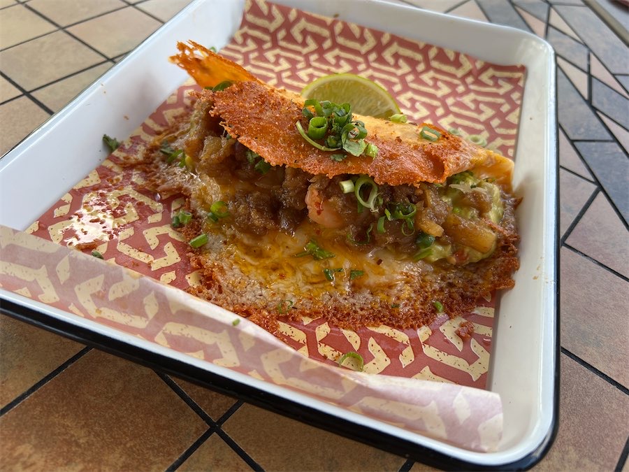 Langosta Y Queso taco… Loaded with chunks of lobster tail and garlic butter. Photo: Wendy Johnson