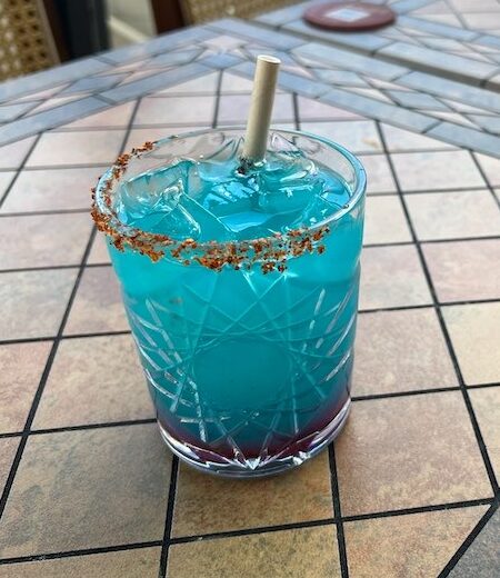 It was margarita time, and I asked for a “traditional lime”. The chap behind the bar (you order at the counter or through each table’s QR code) explained that Cartel’s take tastes like lime, but is actually brilliant blue in colour because it features blue curacao.