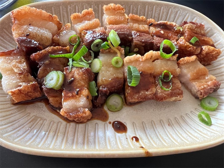 With it, we indulged in wok-cooked barbecue pork belly, sliced into bite-sized portions with bright green spring onion sprinkled about. The pork was beautiful… crispy on top and cooked so the fat was perfectly rendered.