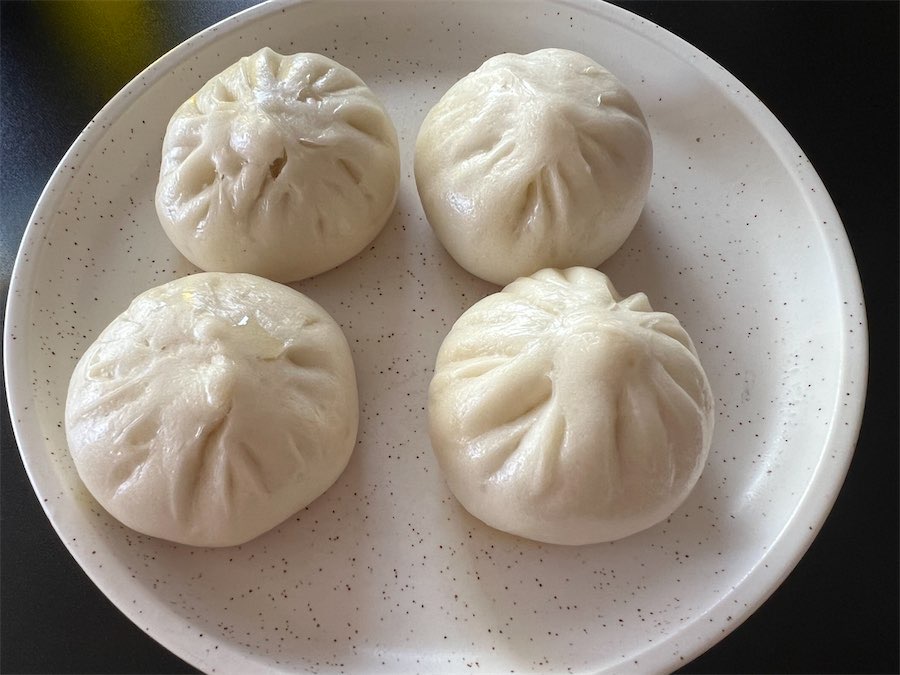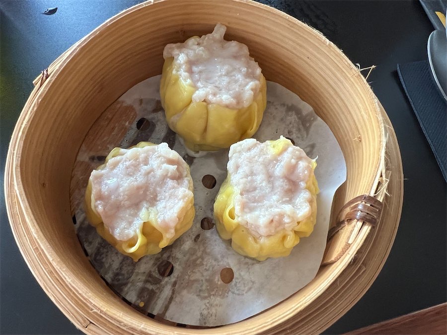 A special dish we hadn’t had before was the salted egg yolk lava bun – dark in colour, but glistening with gold on top. Some say this is a relatively new addition to yum cha menus, first introduced in Hong Kong in 2009. The bun was soft and fluffy and, when opened, featured a gooey egg mixture inside.