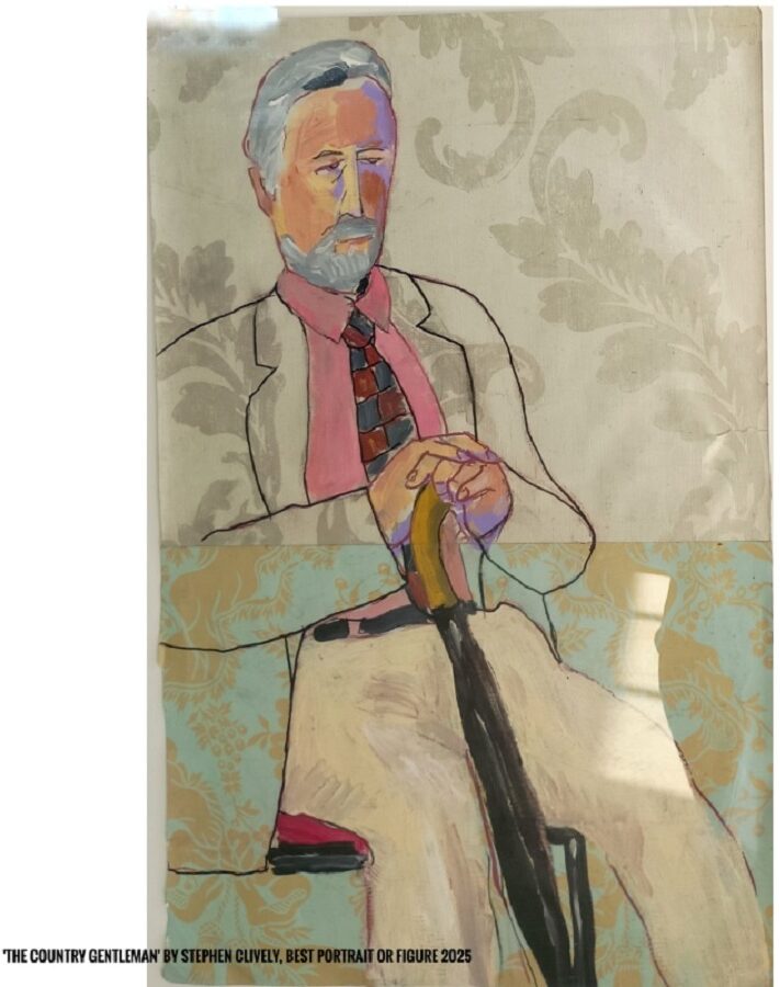 Other major prizes included the Watercolour Prize for Well Earned Rest by Ekaterina Mortensen, the Best Portrait or Figure Prize for The Country Gentleman by Stephen Clively and the new Digital Art Prize for Bobby Graham’s Manspreading.