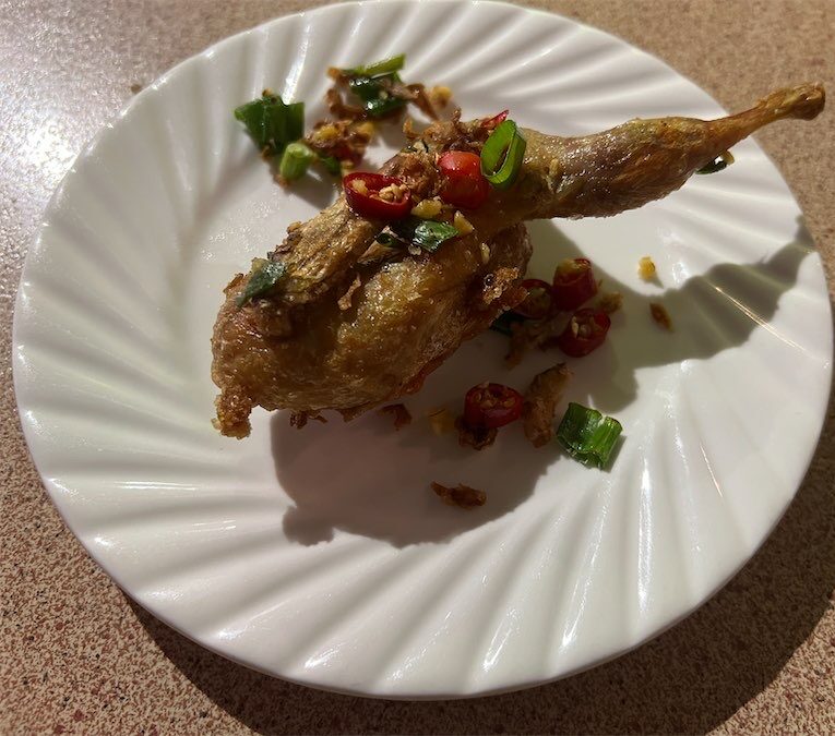 We worship the crispy-skin quail ($16) with a hit of chilli. It’s marinated, lightly fried and tossed with spiced salt in a piping-hot wok to retain its moisture inside and crispiness on the outside.